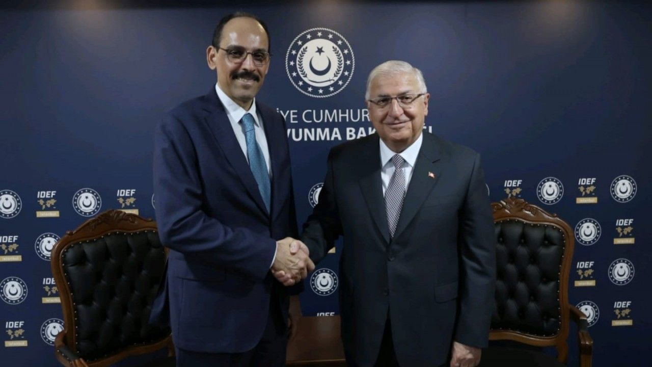 Milli Savunma Bakanı Yaşar Güler ile Milli İstihbarat Teşkilatı Başkanı İbrahim Kalın, 17. Uluslararası Savunma Sanayii Fuarı’nda (IDEF 2025) bir araya geldi.
