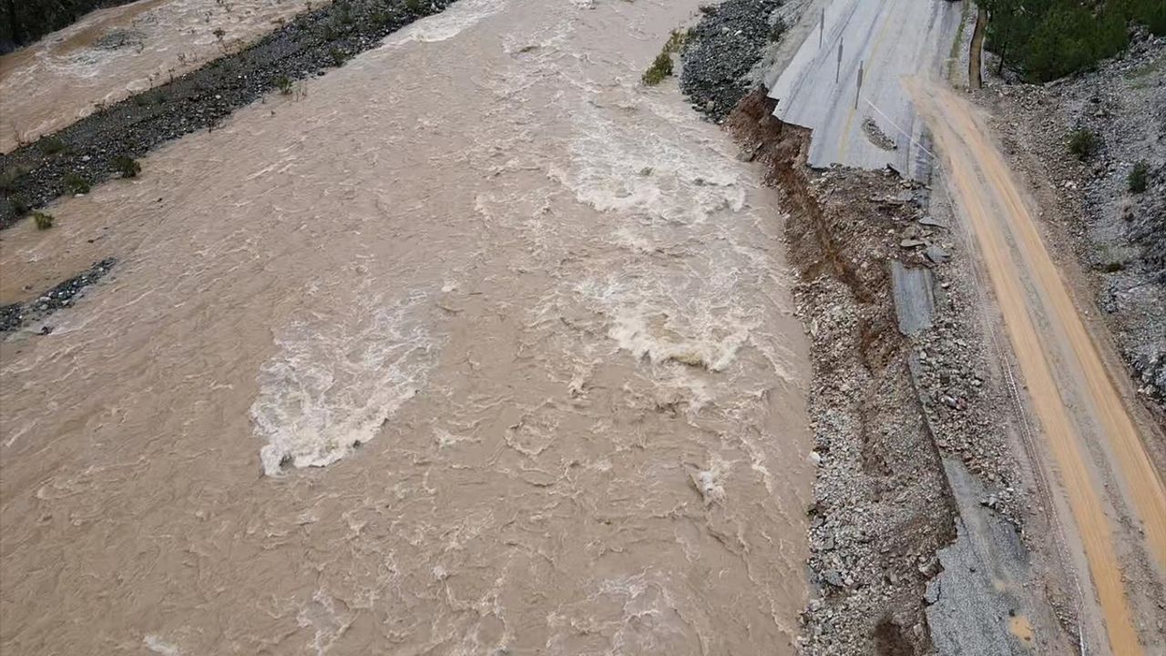MUĞLA (AA) - Muğla ve ilçelerinde etkili olan kuvvetli yağış nedeniyle bazı dereler taştı, Ula Kavakçalı'da çöken yol kontrollü olarak tek şeritten ulaşıma açıldı.