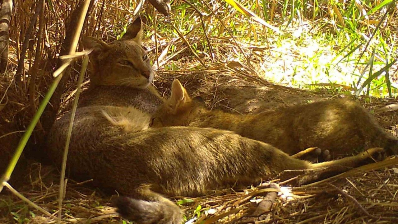 İHA- Kırıkkale kırsalında fotokapanlara yakalanan nesli tehlike altındaki saz kedisi, yavrularıyla birlikte görüntülendi.