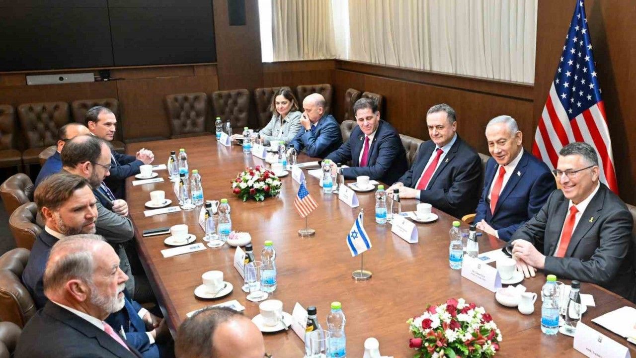 ABD Başkan Yardımcısı James David Vance, İsrail’deki temaslarını sürdürüyor. Vance, İsrail Başbakanı Binyamin Netanyahu tarafından Kudüs’teki Başbakanlık Ofisi’nde resmi törenle karşılandı. Karşılamanın ardından birlikte yemek yiyen ikili ardından görüşmeye geçti. İsrail Başbakanı Netanyahu toplantının ardından yaptığı açıklamada, İsrail’in "ABD’nin kölesi" olduğu fikrini reddetti. Netanyahu, "Bunu çok net söylemek istiyorum. Bir hafta İsrail’in ABD’yi kontrol ettiği söyleniyor. Ertesi hafta ise ABD’nin İsrail’i kontrol ettiği. Bu tamamen saçmalık. Ortak değerleri ve ortak hedefleri paylaşan bir ortaklık, bir müttefiklik ilişkimiz var. Tartışmalarımız olabilir, bazı konularda anlaşmazlıklar yaşanabilir ama genel olarak geçen yıl sadece hedefler üzerinde değil, bu hedeflere nasıl ulaşılacağı konusunda da anlaşma sağladığımızı söylemeliyim" dedi.