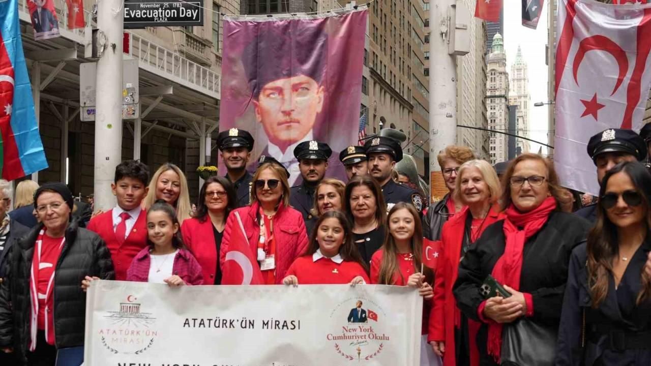 Türkiye Cumhuriyeti’nin kuruluşunun 102. yıl dönümü kapsamında düzenlenen Cumhuriyet Bayramı kutlamasında ABD’nin New York kentine bağlı Manhattan bölgesinde Türk ve Amerikan bayrakları göndere çekildi.