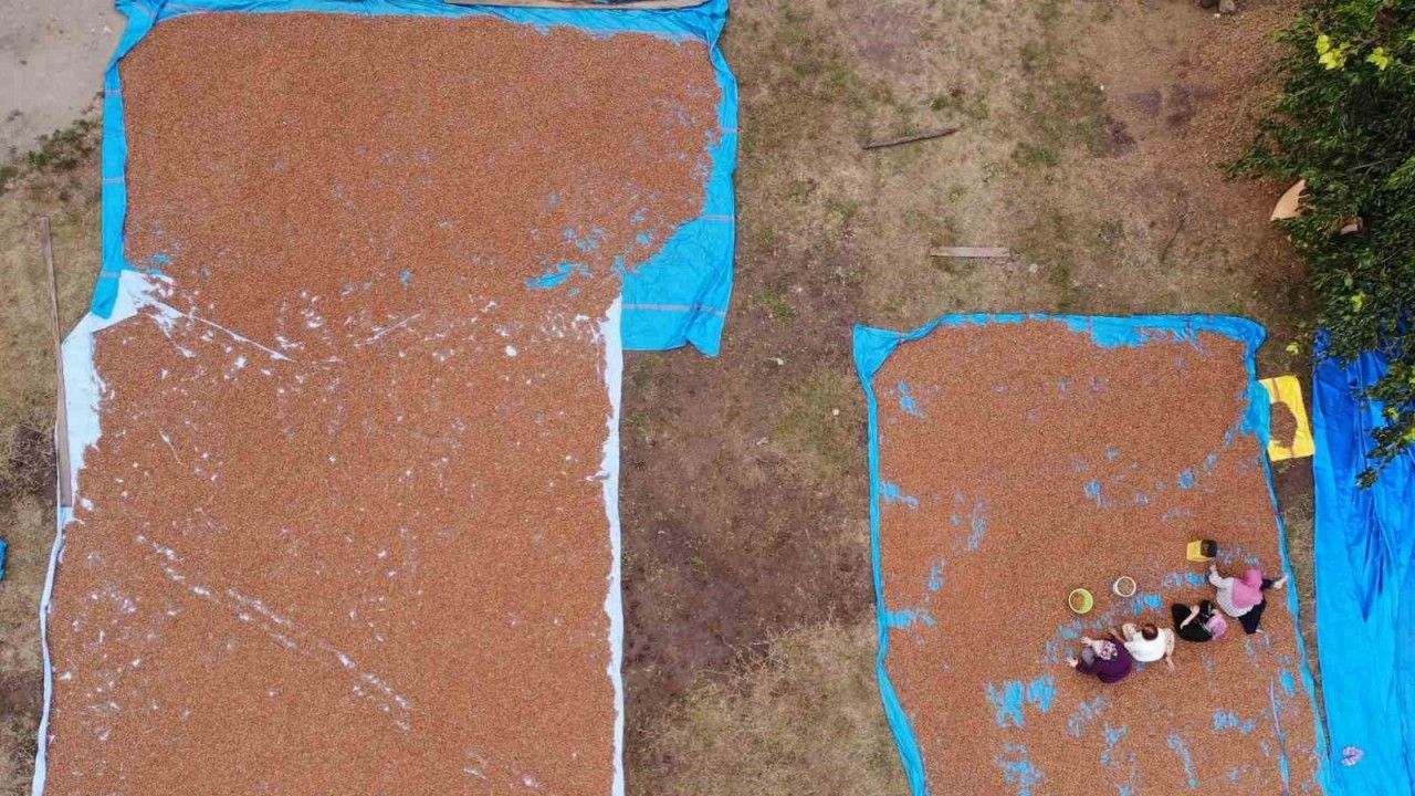 Altınordu ilçesinin Karacaömer Mahallesi’nde ise hasadı tamamlanan fındıklar bazı noktalarda harmanları doldurdu. Bu yıl nisan ayında etkili olan zirai don nedeniyle rekoltede ciddi düşüş yaşanırken, hasadı yapıldıktan sonraki işlemleri yapılan fındıklar imece usulü seçiliyor.