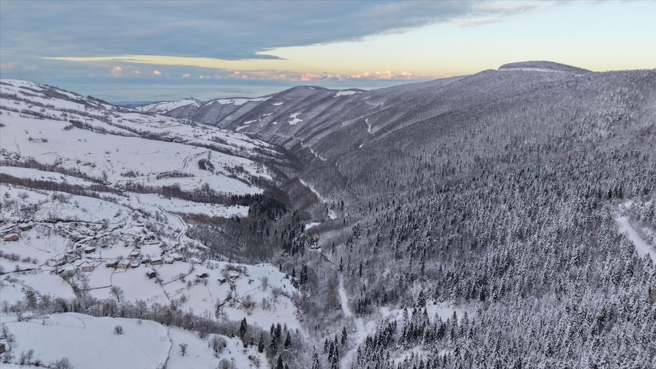 Dağların arasından, ormanın içinden geçen Alaçam ilçesini Sinop'un Durağan ilçesine bağlayan yolda kar altında seyrine doyumsuz manzaralar oluştu.