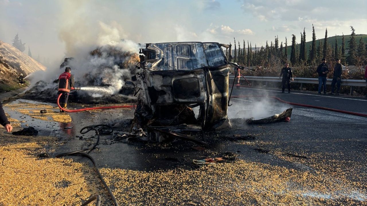 Şanlıurfa'da önündeki tıra arkadan çarptıktan sonra yan yatan tırda yangın çıktı. Yangında 1 kişi öldü, 1 kişi yaralı olarak kurtarıldı.