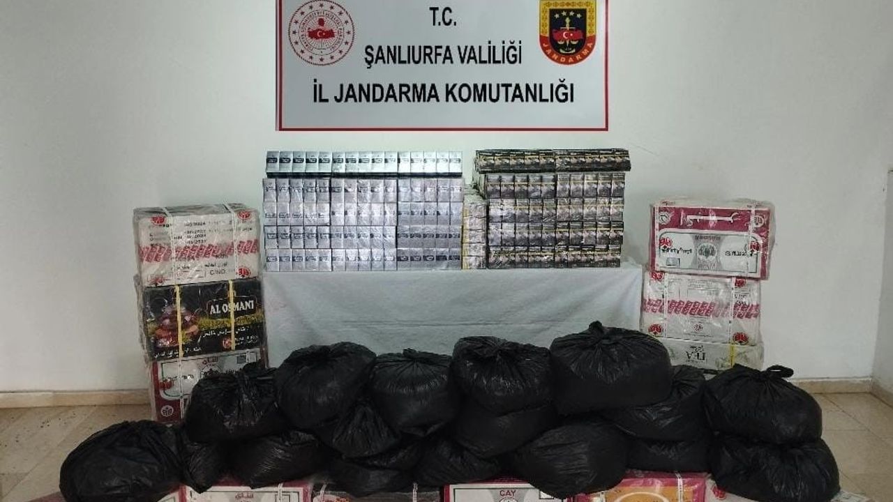 Şanlıurfa’da jandarma tarafından gerçekleştirilen yol uygulamasında 2 bin 470 paket gümrük kaçağı sigara ile 115 kilogram çay ele geçirildi.