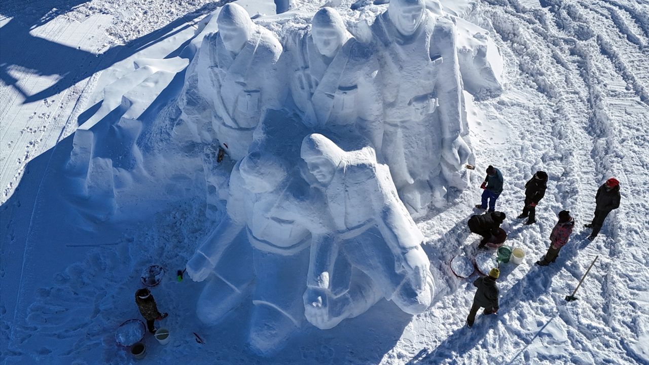 KARS (AA) - Kars'ta Sarıkamış Harekatı'nın 111. yılı anma etkinlikleri kapsamında yapılan kardan heykeller tamamlandı.