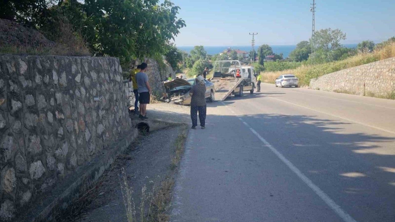 Sinop’ta otomobilin istinat duvarına çarptığı kazada 1’i bebek 3 kişi yaralandı.