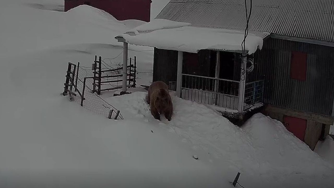 Trabzon ve Giresun sınırındaki 2 bin 200 rakımlı Sis Dağı Yaylası'nda, kış uykusundan uyanan dev bir ayı yayla evlerine dadandı. O anlar, bir yaylacının güvenlik kamerasına saniye saniye yansıdı.