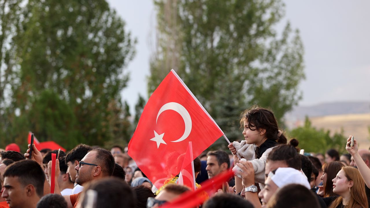 Parkta ellerinde Türk Bayraklarıyla toplanan çok sayıda vatandaş, SOLOTÜRK'ün gösterisini ilgiyle takip etti.