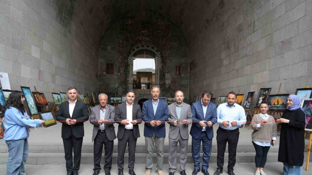 Erzurum’da tarihi Çifte Minareli Medrese’de 15’inci kişisel sergisini açan Fesih Özyurt, eserlerindeki tarihi ve kültürel konularla ilgi görüyor.