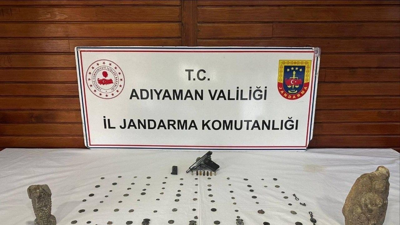 İHA- Adıyaman İl Jandarma Komutanlığı ekiplerince tarihi eser kaçakçılığına yönelik yürütülen çalışmalar kapsamında 4 şüpheli şahıs düzenlenen operasyonla kıskıvrak yakalandı.