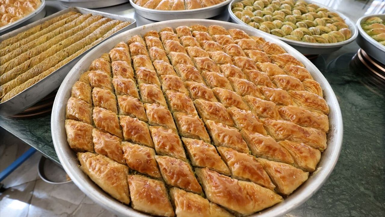 Baklava ustaları, talebi karşılamak için hummalı bir şekilde çalışmalarını sürdürüyor.