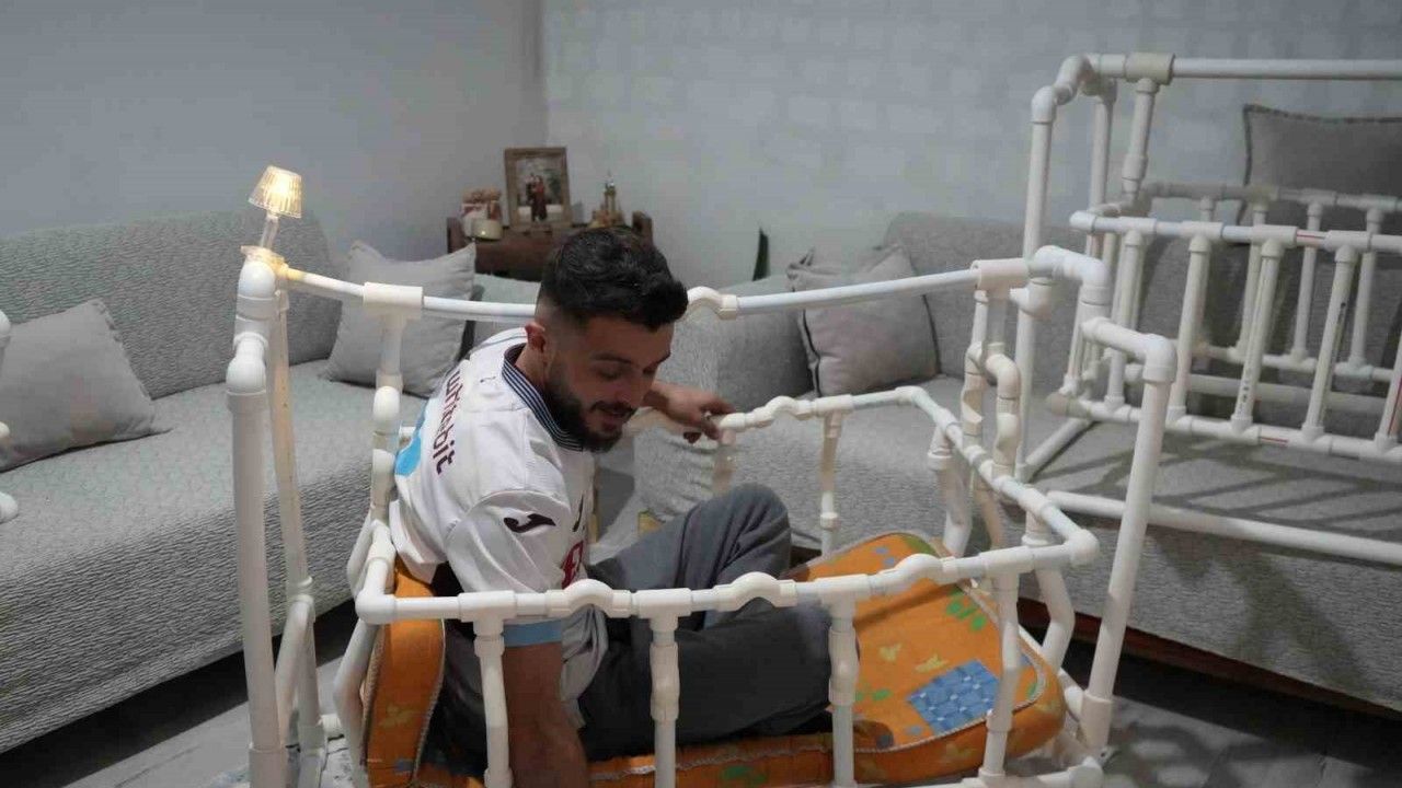 Karadağ, "10 yılı aşkın bir süredir su tesisatçısıyım. 3 yıldır evliyim. Allah bir çocuk nasip ederse ona manevi bir hediye bırakmak istiyordum. 1 ay sonra eşim doğum yapacağından bir hazırlık yapayım dedim. Su borularından beşik yapmayı kafamda tasarladım. Bir ölçü almadan gelişigüzel bir şekilde evde yaptım. İçine girdiğim beşikte kavis adlı malzeme kullandığından biraz maliyetli. Bu beşikte 2-3 boy boru, 25-20 adet T boru ile yaptım. Akşamları evde olduğum zamanlarda yaptım. 3 saat gibi bir sürede beşiği bitirdim. Beşiği internete atınca insanlar, ’ne kadar sağlam, süs için mi yapılmış’ demesin diye içine girdim. Yaklaşık 60 kiloyum. İçine girip sallandım ve bir sıkıntı olmadı. Sosyal medyaya da bu görüntülere attım. Sadece bir platformda 1,6 milyon kişi tarafından izlendi. Diğer platformlarda da yine hatırı sayılır bir izlenme aldı. İsteyene bu beşiklerden yapabilirim. Videodan sonra çok ulaşan oldu. Birkaç kişiye de yapıp gönderdim. Onlar da gayet başarılı buldu" dedi.