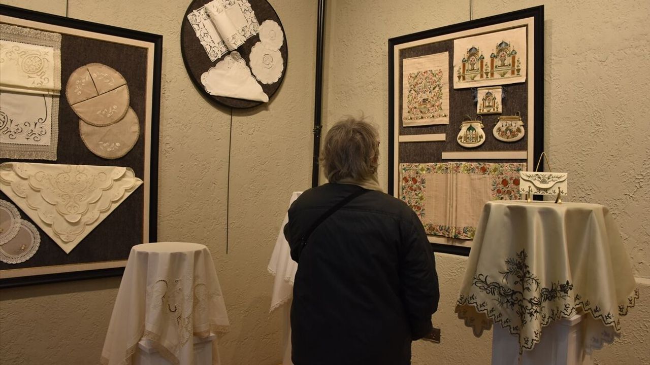 Güzel Sanatlar Galerisi'ndeki sergide, nakış örtüleri, gelinlik, damatlık, kına kıyafetleri ve mumluklardan oluşan 83 ürün yer aldı.