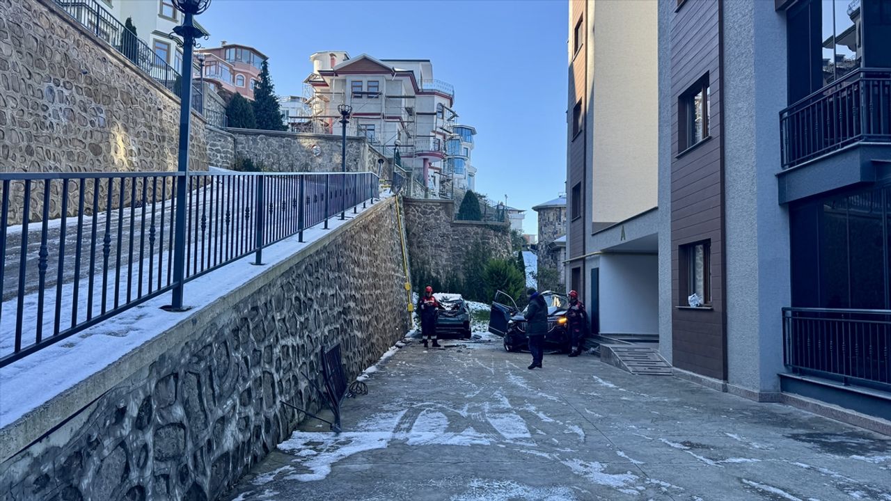 Boztepe Mahallesi'nde F.H'nin (51) kullandığı 61 FH 822 plakalı SUV tipi araç, buzlanma nedeniyle sürücüsünün direksiyon hakimiyetini kaybetmesi sonucu sitenin bahçesine devrildi.