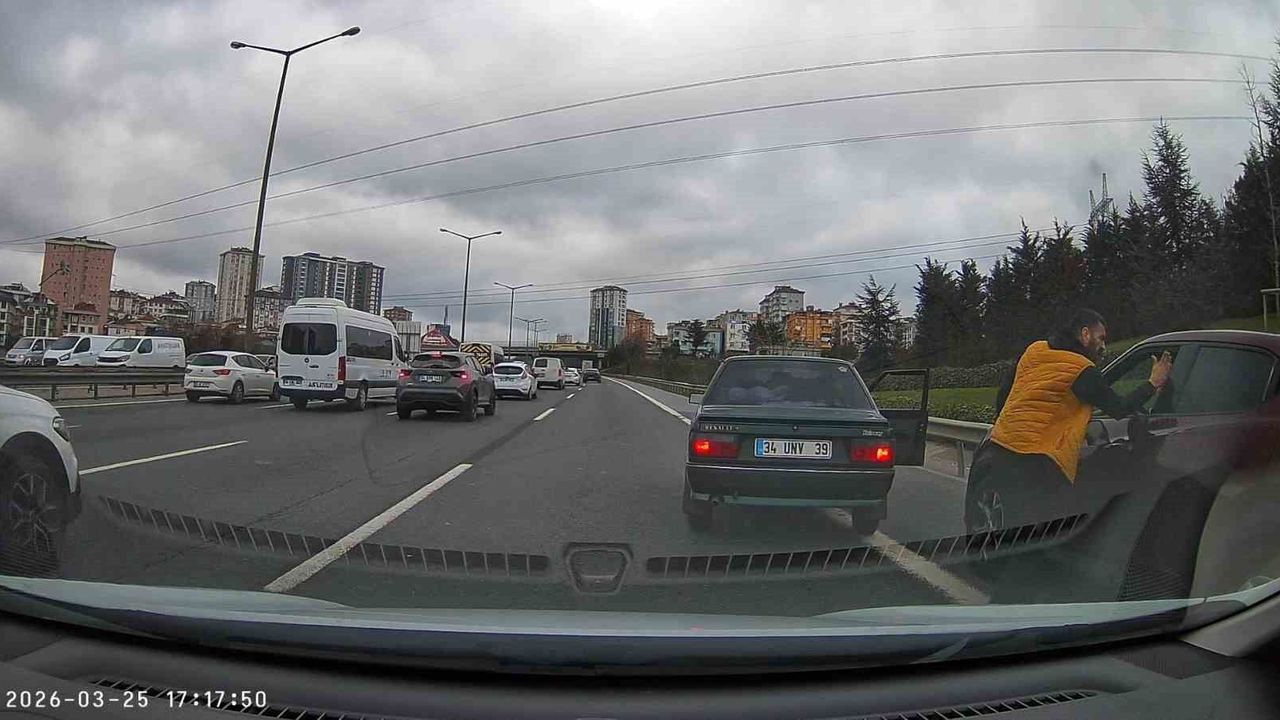 Ümraniye D-100 Karayolu üzerinde makas atmaya çalışan bir sürücü, yol vermediği gerekçesiyle sıkıştırdığı araç sahibine saldırdı. Trafiği birbirine katan öfkeli şoför, diğer sürücüye tokat atarak dehşet saçtı.