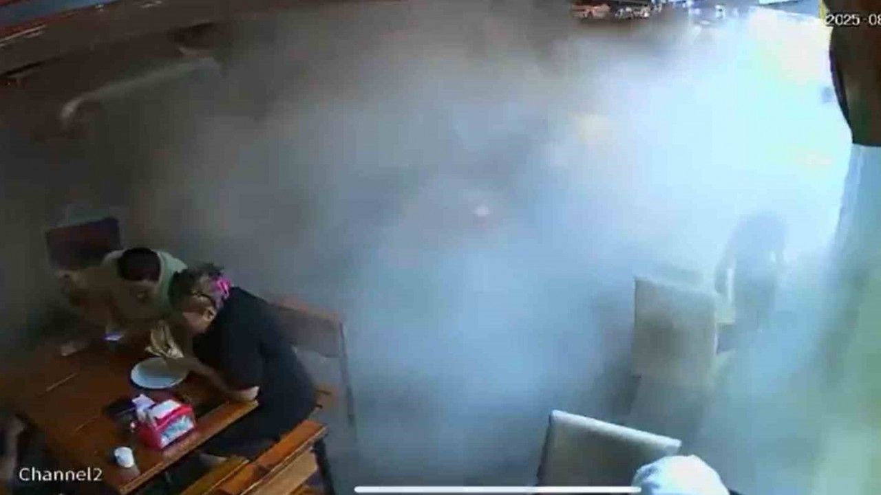 Yalova’da kamyonun patlayan lastiği önünden geçtiği restoranda tozu dumana kattı. Güvenlik kameralarına anbean yansıyan olayda restorandaki müşteriler neye uğradıklarını şaşırdı.