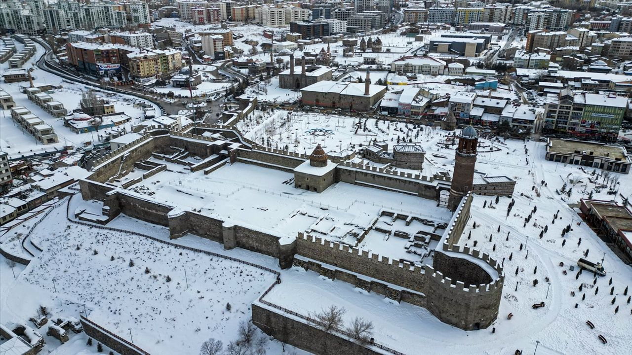 Kar kalınlığının 24 santimetreye ulaştığı kentte, tarihi yapılar da karla kaplandı.